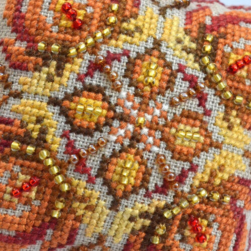 Техніка виконання: рахунковий хрестик, в дизайні присутні віялові стібки, діамантові вічка, козлик.