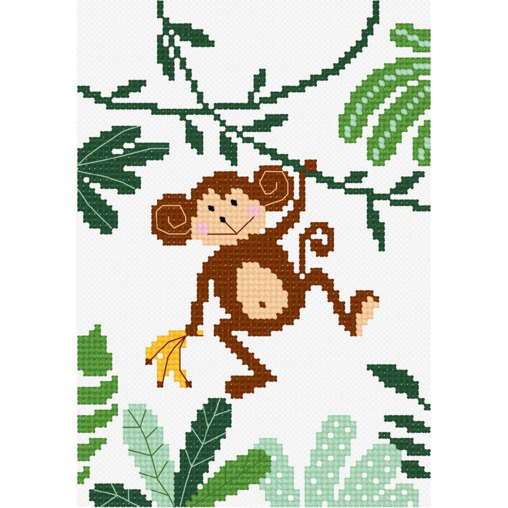 N1351 Чарівниця Набір для вишивки друкованим хрестиком - Маленька мавпочка 11x16 см, Aida 14