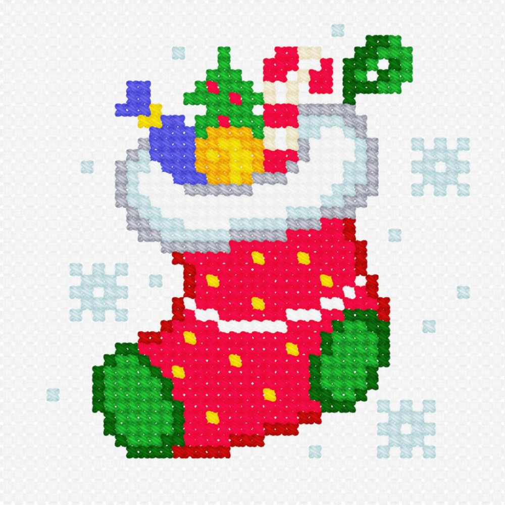 N972 Чарівниця Набір для вишивки рахунковим хрестиком - Різдвяна шкарпетка 9x9 см, Aida 14