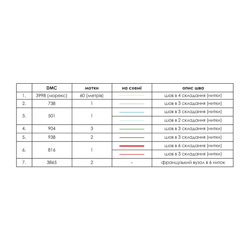 Важливо! Схема нитками не комплектується. За Вашим запитом наші менеджери можуть додатково укомплектувати схему потрібними матеріалами.