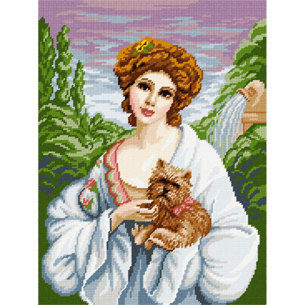 За основу використовується німецький страмін Zweigart (жорстка рівномірна канва), на який вже нанесена кольорова схема з точним співпадінням кольорів з нитками канви. На кожному перетині знаходиться кольоровий квадратик, тому вишивати дуже легко. Картина вишивається полухрестом прикладеної пряжею (полірований акрил 100%). Готову вишивку потрібно натягнути на картон і вставити в рамку.