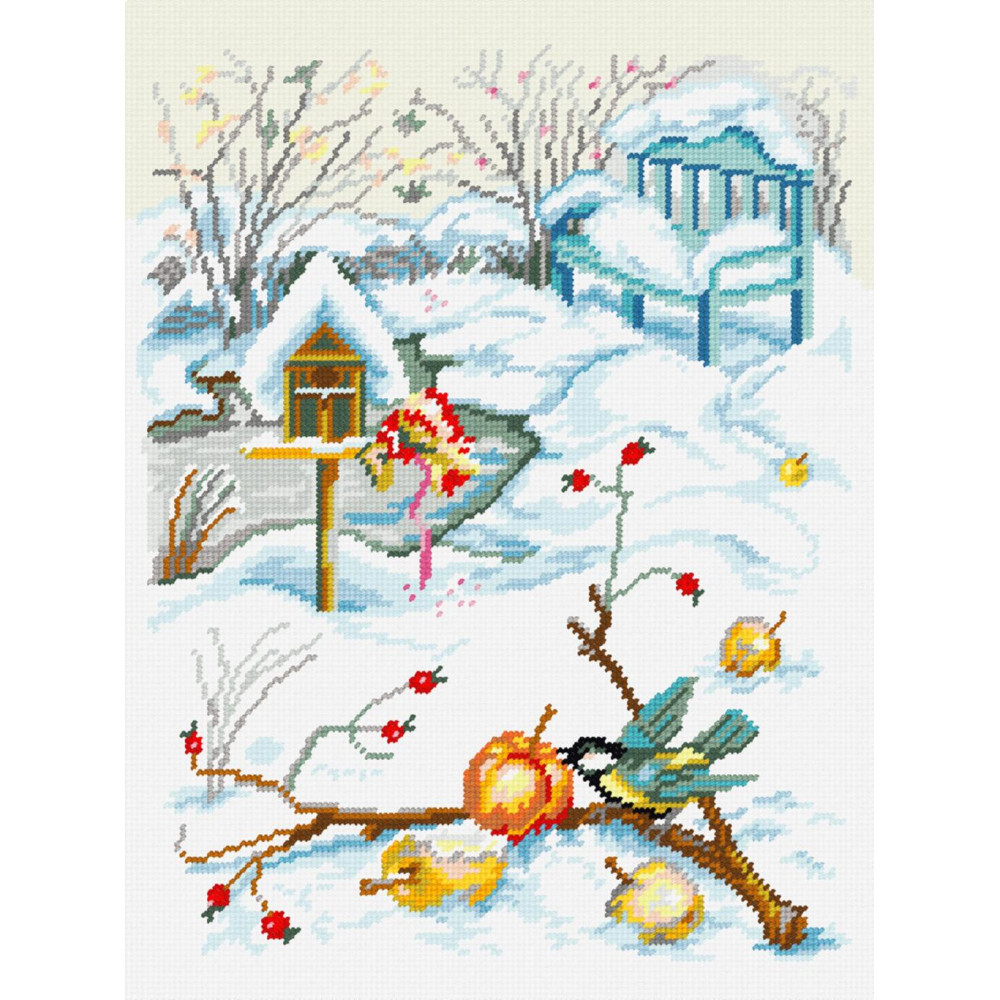 За основу використовується німецький страмін Zweigart (жорстка рівномірна канва), на який вже нанесена кольорова схема з точним співпадінням кольорів з нитками канви. На кожному перетині знаходиться кольоровий квадратик, тому вишивати дуже легко. Картина вишивається полухрестом прикладеної пряжею (полірований акрил 100%). Готову вишивку потрібно натягнути на картон і вставити в рамку.