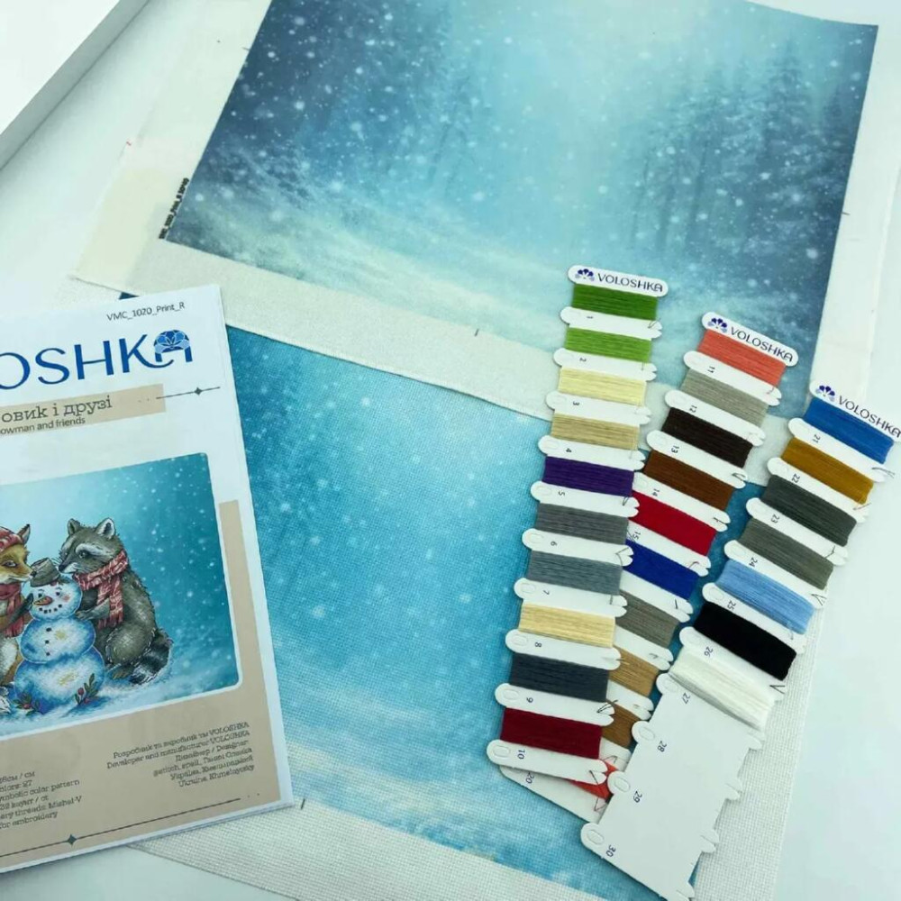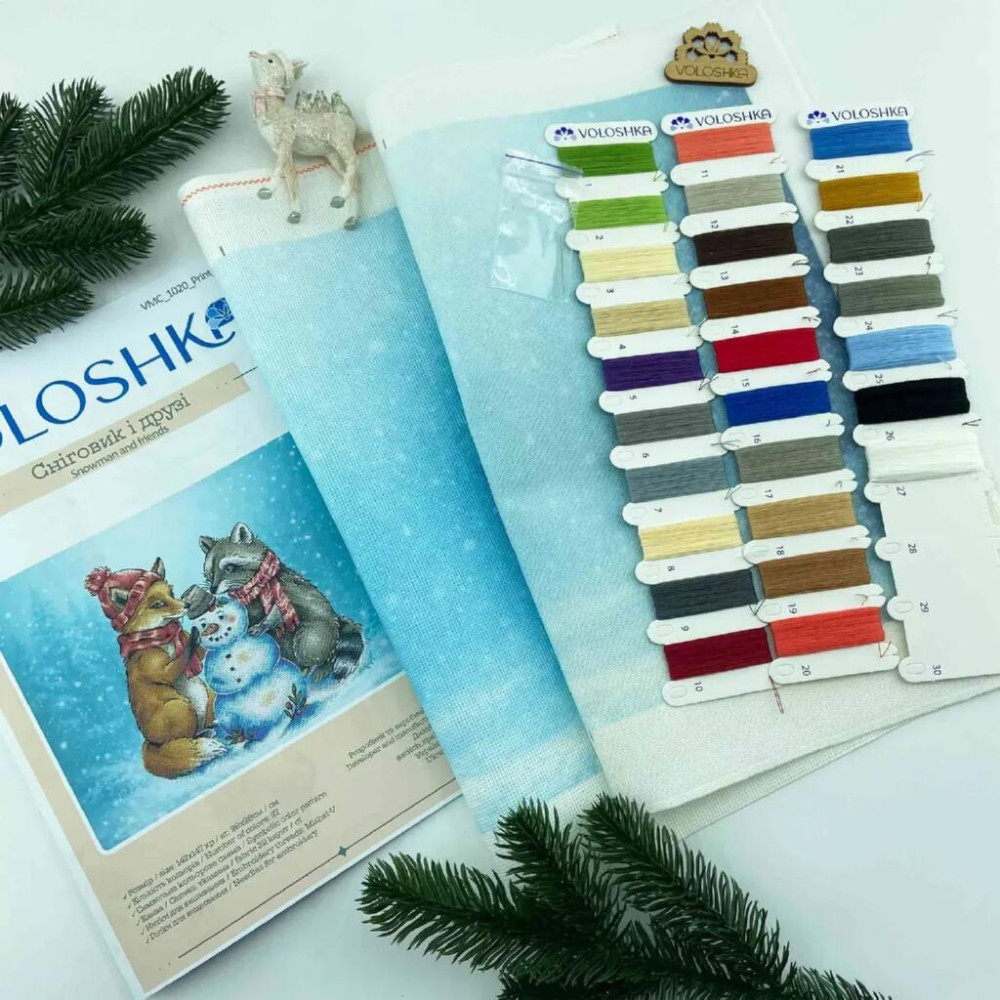 VMC_1020 Voloshka Набір для вишивки рахунковим хрестиком - Сніговик і друзі 28x28 см, Aida 16 (канва з фоном)