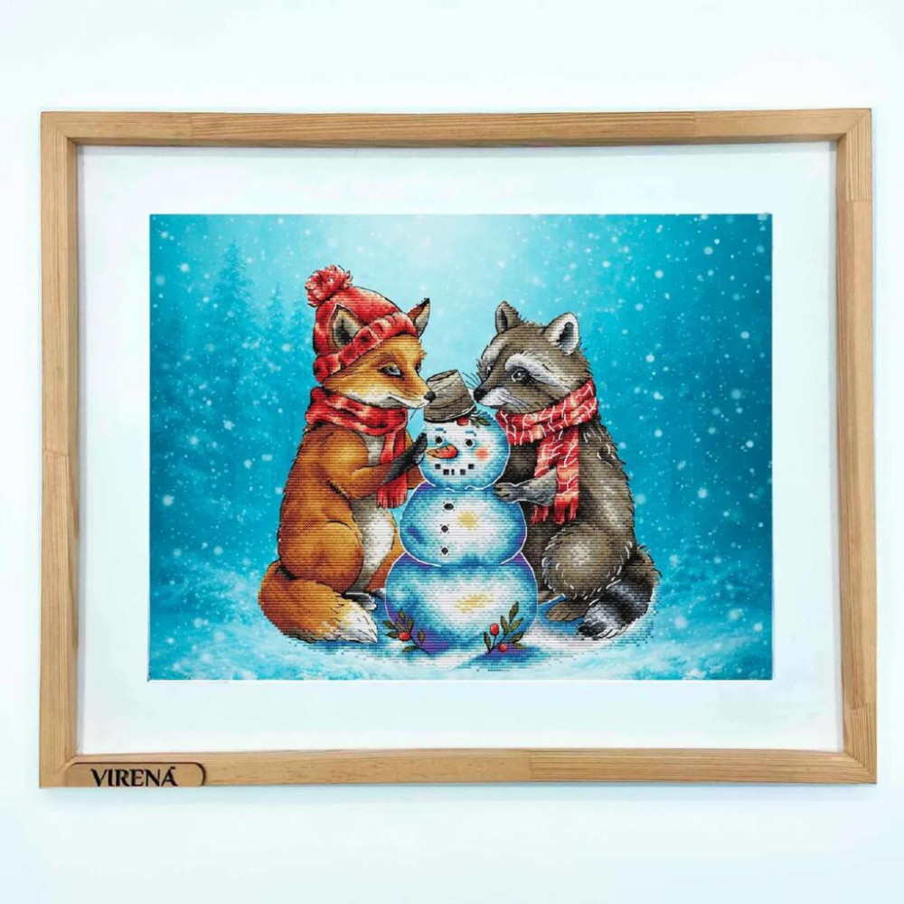 VMC_1020_R Voloshka Набір для вишивки рахунковим хрестиком - Сніговик і друзі 28x28 см, рівномірка 32 ct (канва з фоном)