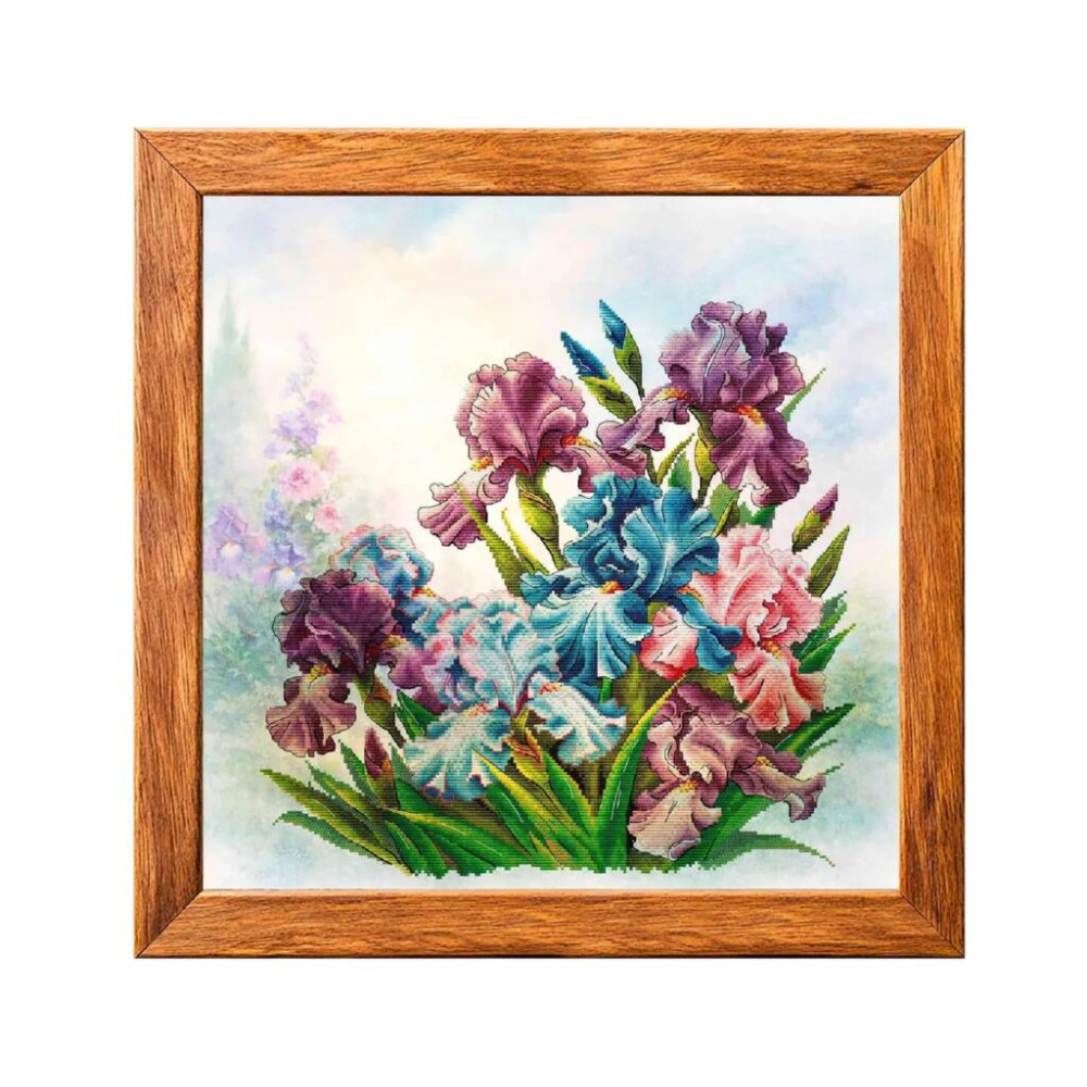 VMC_1027_R Voloshka Набір для вишивки рахунковим хрестиком - Іриси 33x33 см, рівномірка 32 ct (канва з фоном)