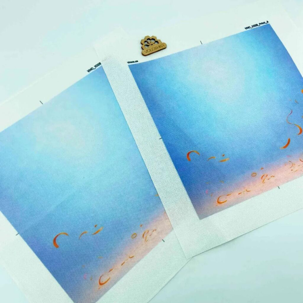 Основою набору є рівномірна тканина 32 ct з нанесеним фоновим зображенням, яке підкреслює сюжет композиції та робить готову роботу більш виразною.