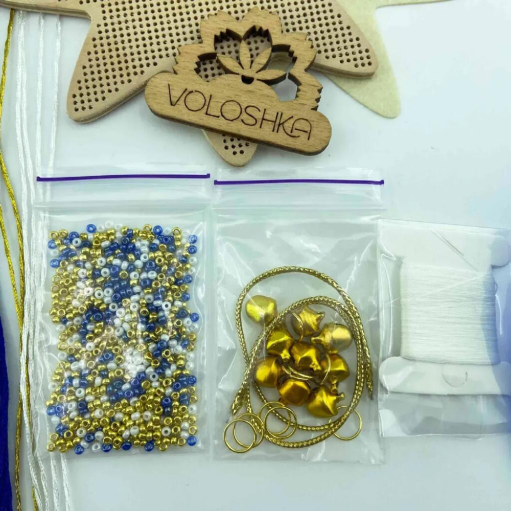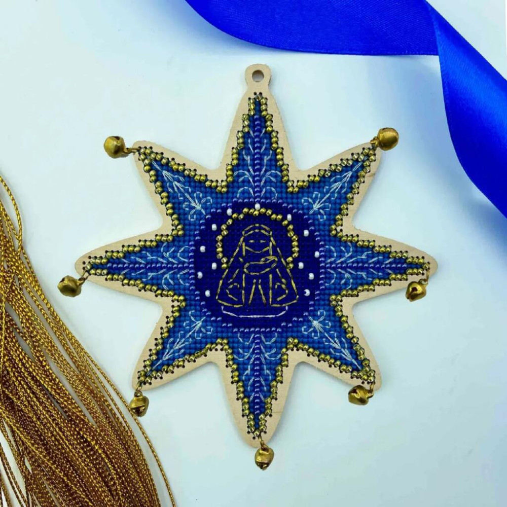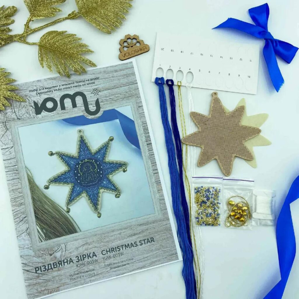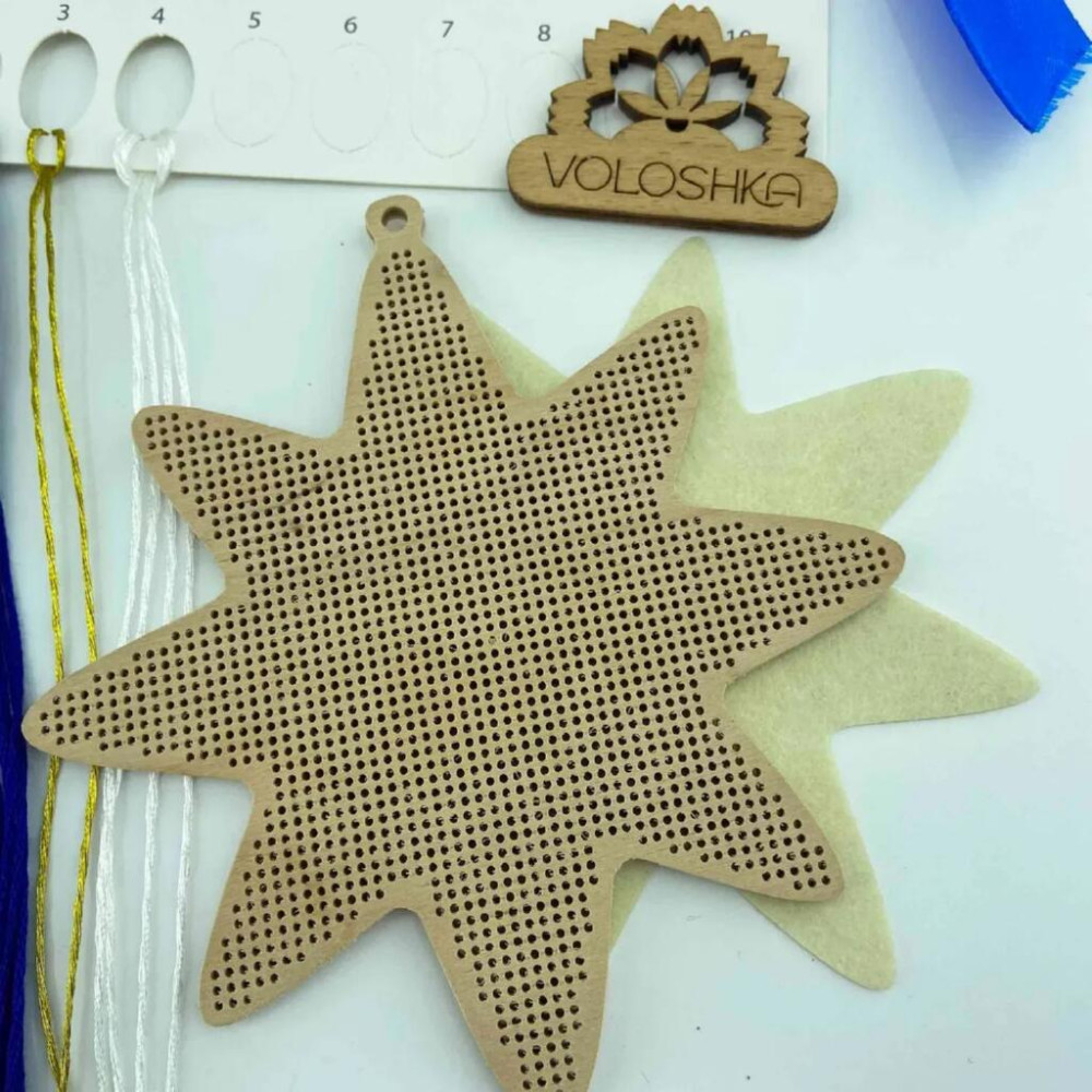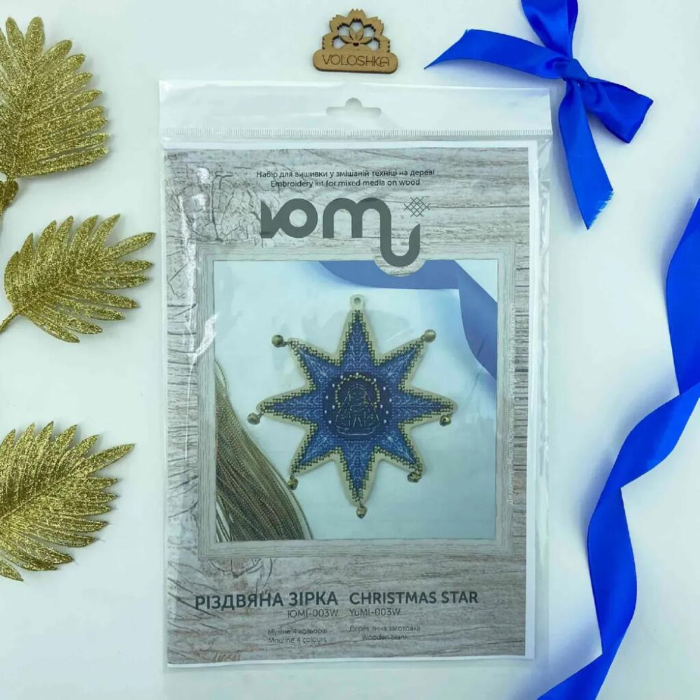 YuMI_003W Voloshka Набір для вишивки хрестом та бісером по дереву YuMI - Іграшка Різдв'яна зірка 12x12 см