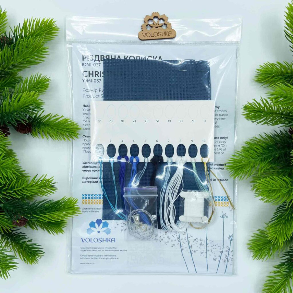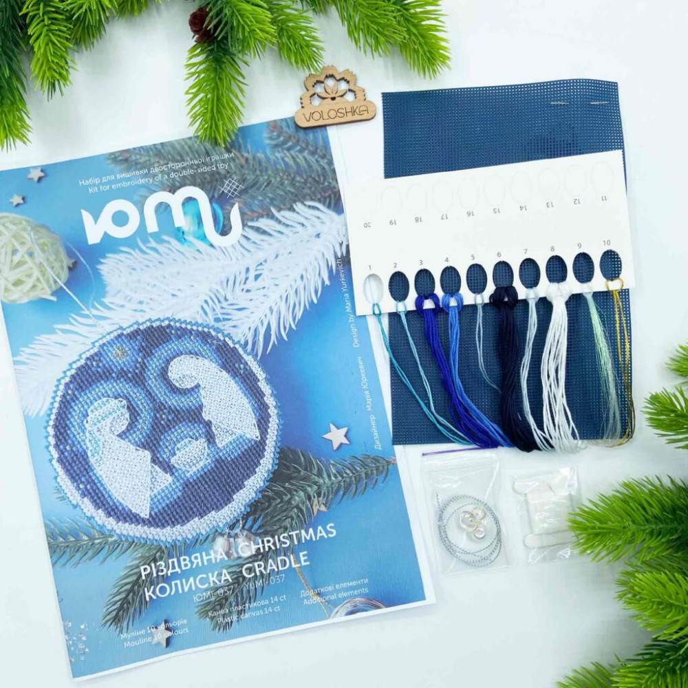 YuMI_037 Voloshka Набір для вишивки хрестом та бісером YuMI - Фігурка Різдвяна колиска 9,6х9,6 см, Aida 14 ct пластикова